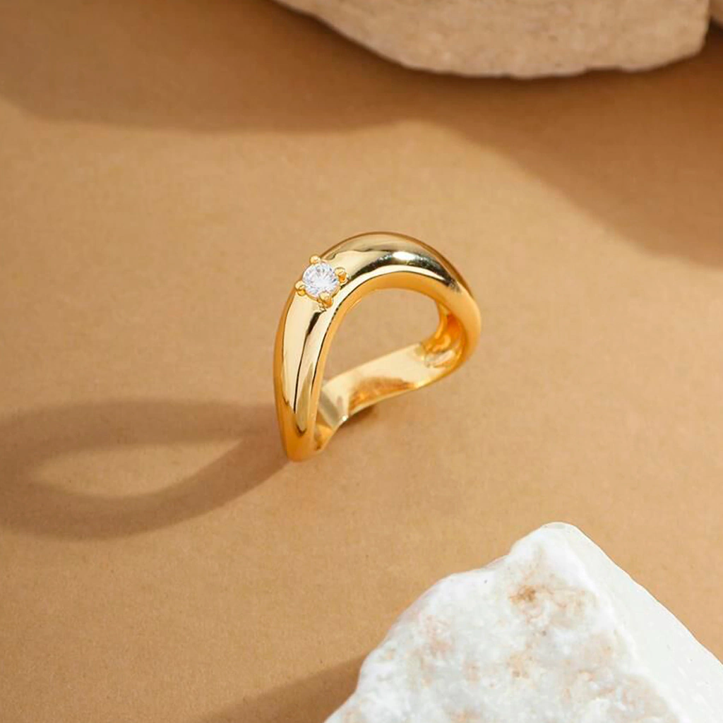 Anel curvo com zircônia.