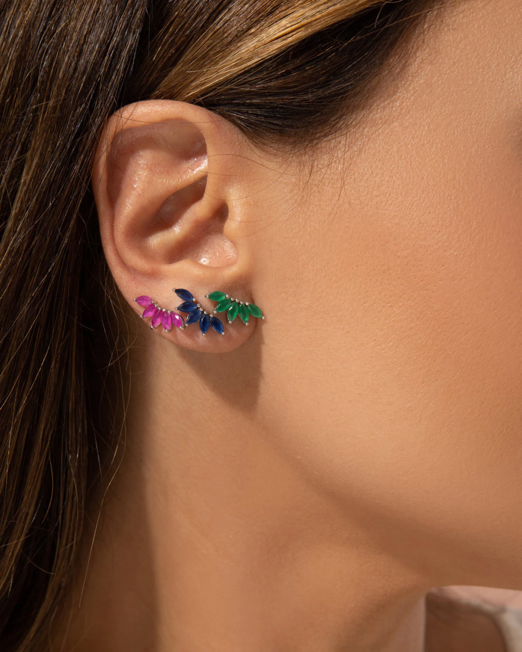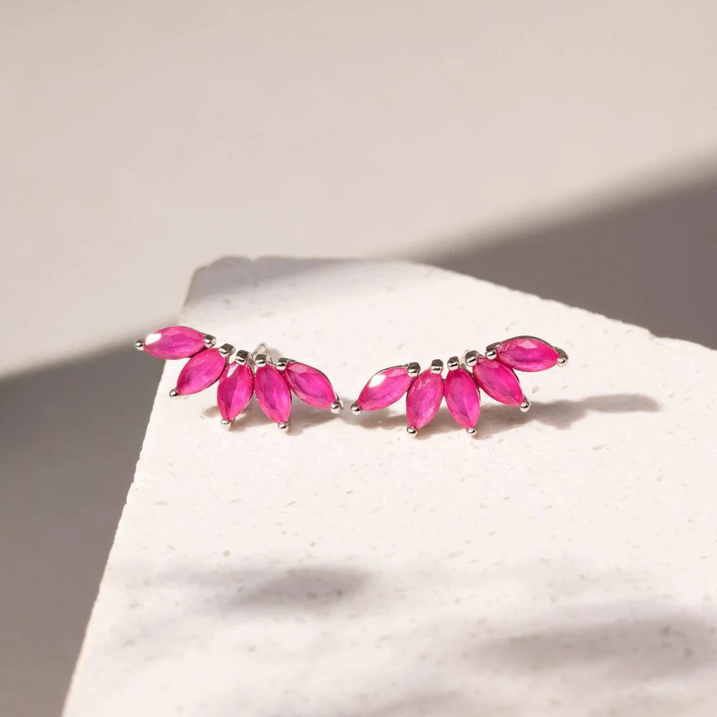 Brinco estilo ear cuff com cristais navetes na cor vermelho rubi.