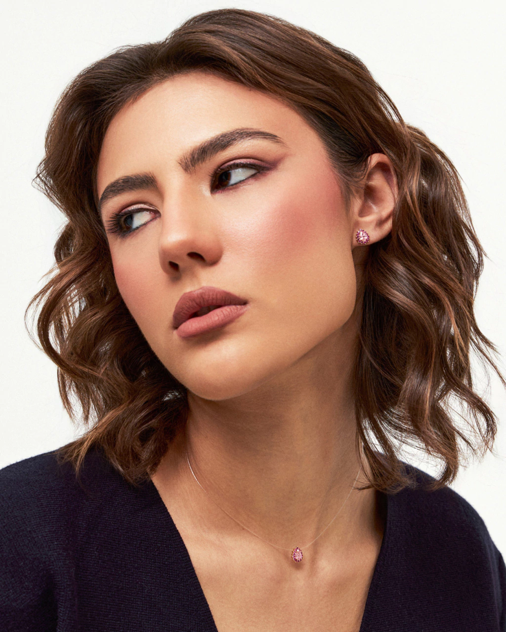 Gota zircônia cor safira rosa, bordada por cristais zircônias pink.