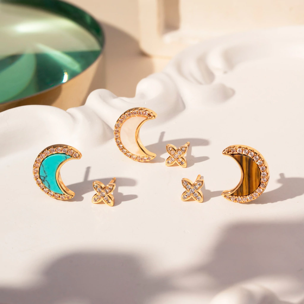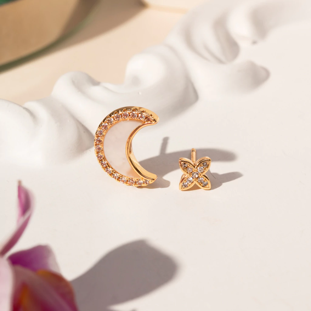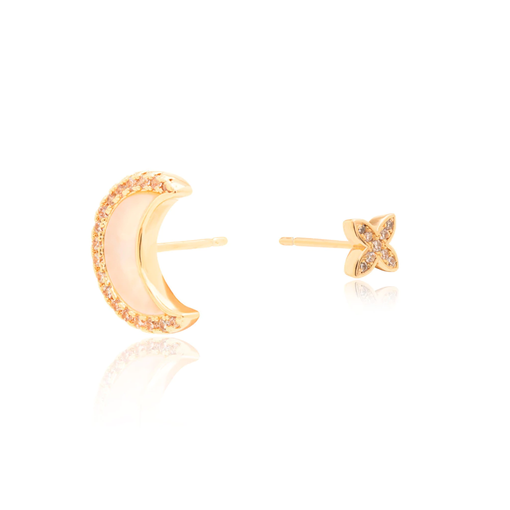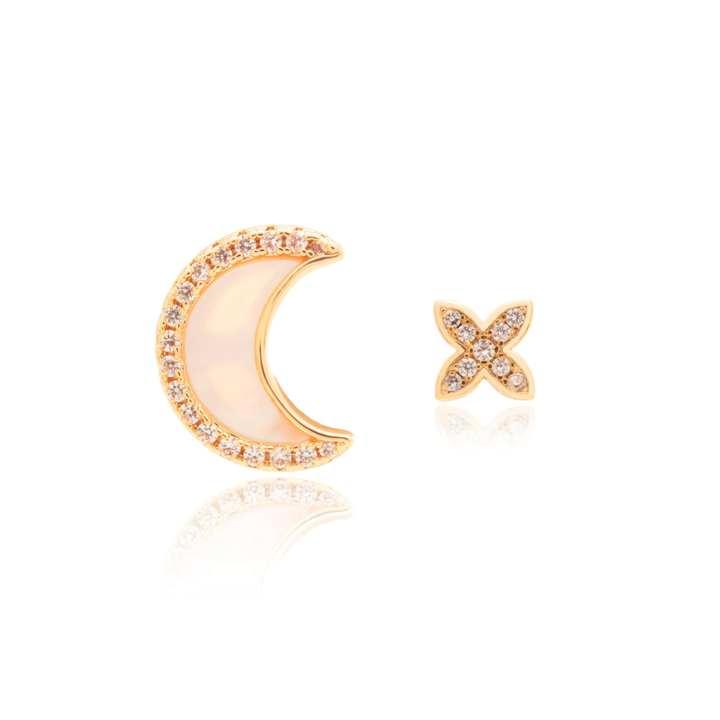 Brinco assimétrico: par contém 1 lua e 1 estrelinha de zircônias.