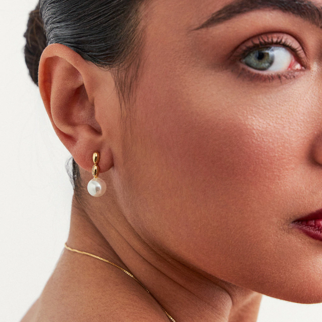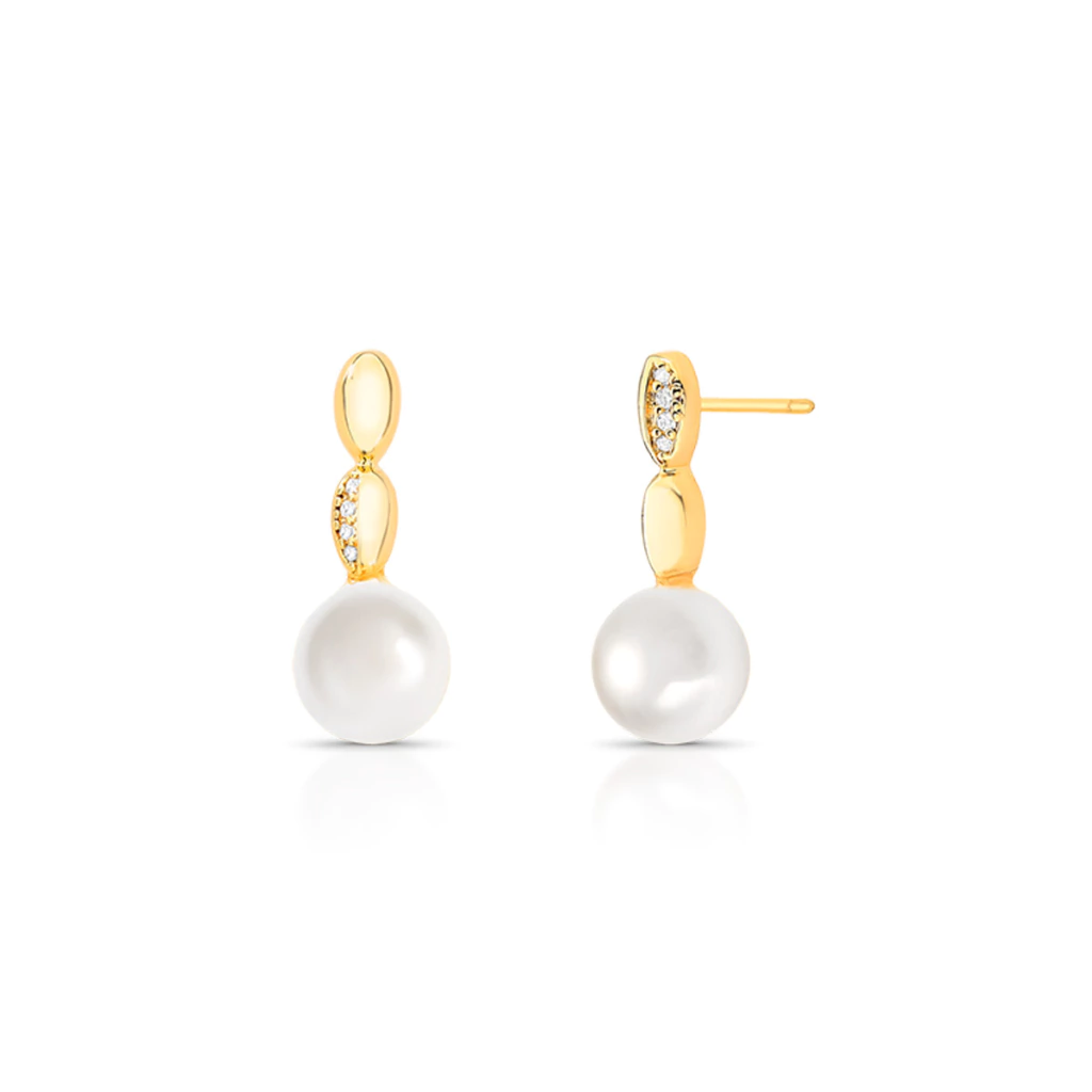 Brinco delicado, detalhes em zircônias com pérola shell.