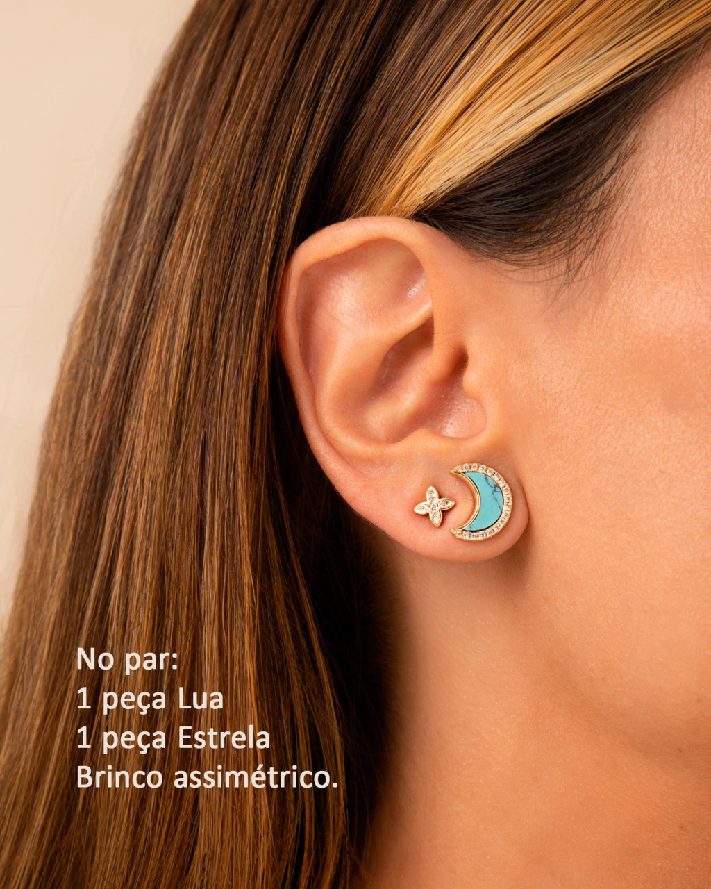 Brinco assimétrico: par contém 1 lua e 1 estrelinha de zircônias.