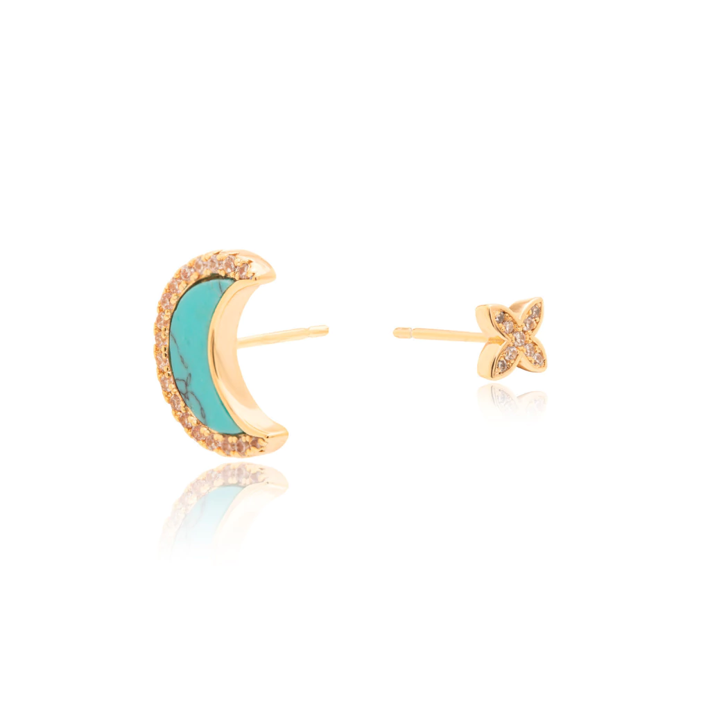 Lua com pedra raolita turquesa com zircônias, 14 mm largura por 11 mm altura.