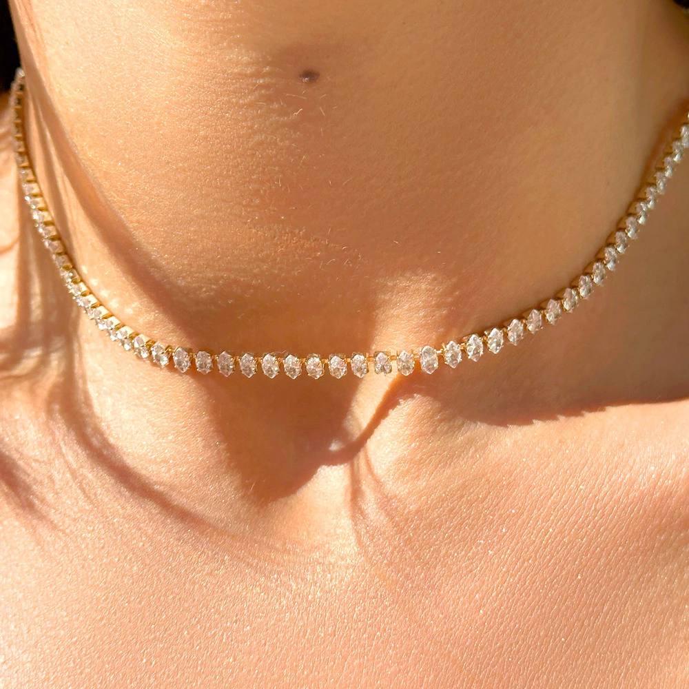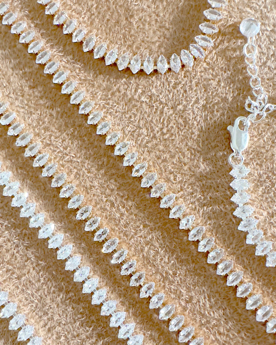 Colar choker riviera de pedras cristais zircônias navetes de alto brilho, com acabamento de joia