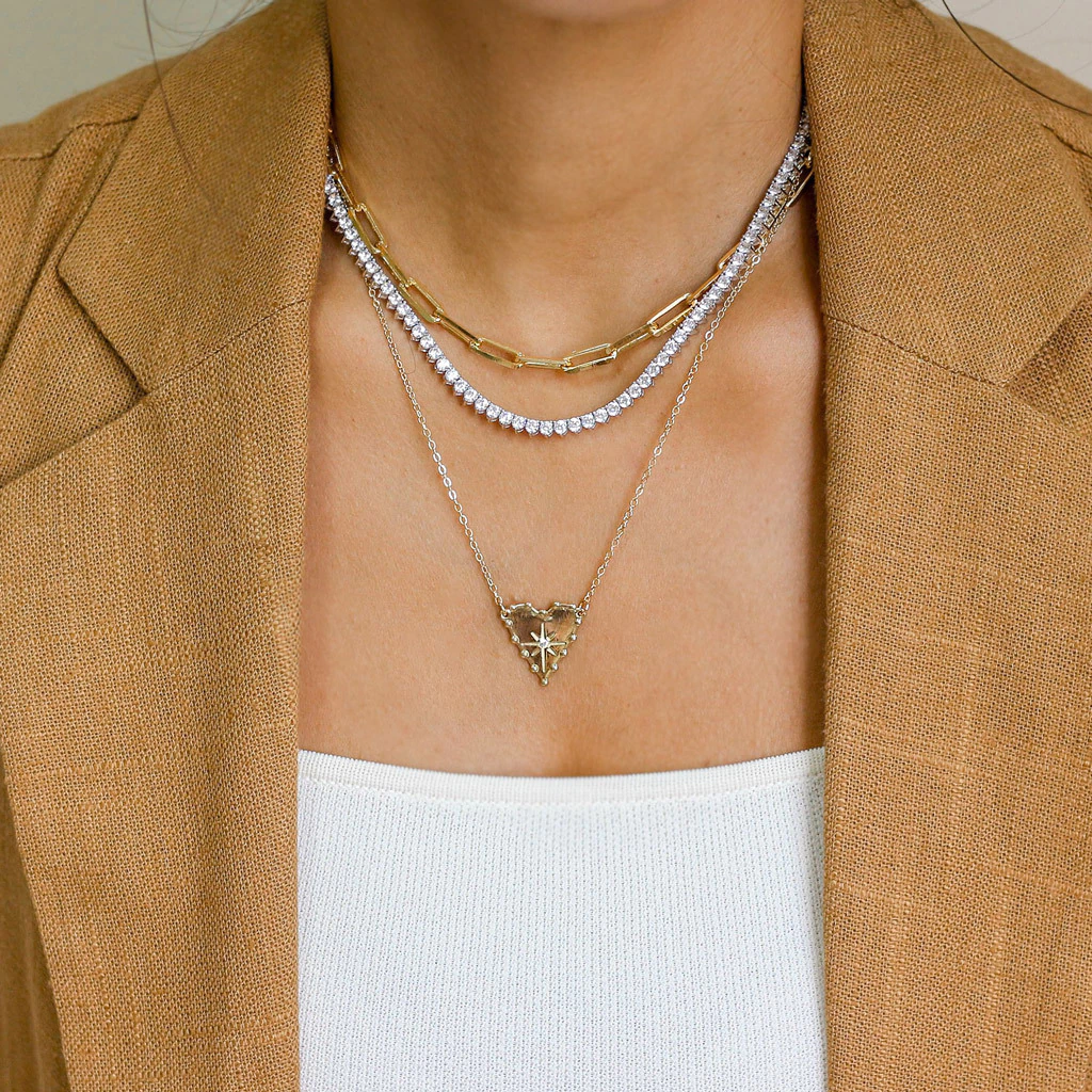 Pingente coração com zircônia tamanho 2 x 2 cm.