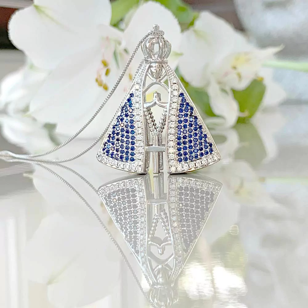 Pingente Nossa Senhora: 3 cm altura x 2,8 cm largura
