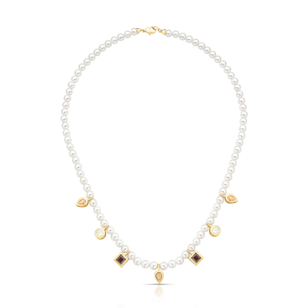 Possui 7 pingentes em zircônias, nas cores cristal, fumê e canário; cravação inglesa.