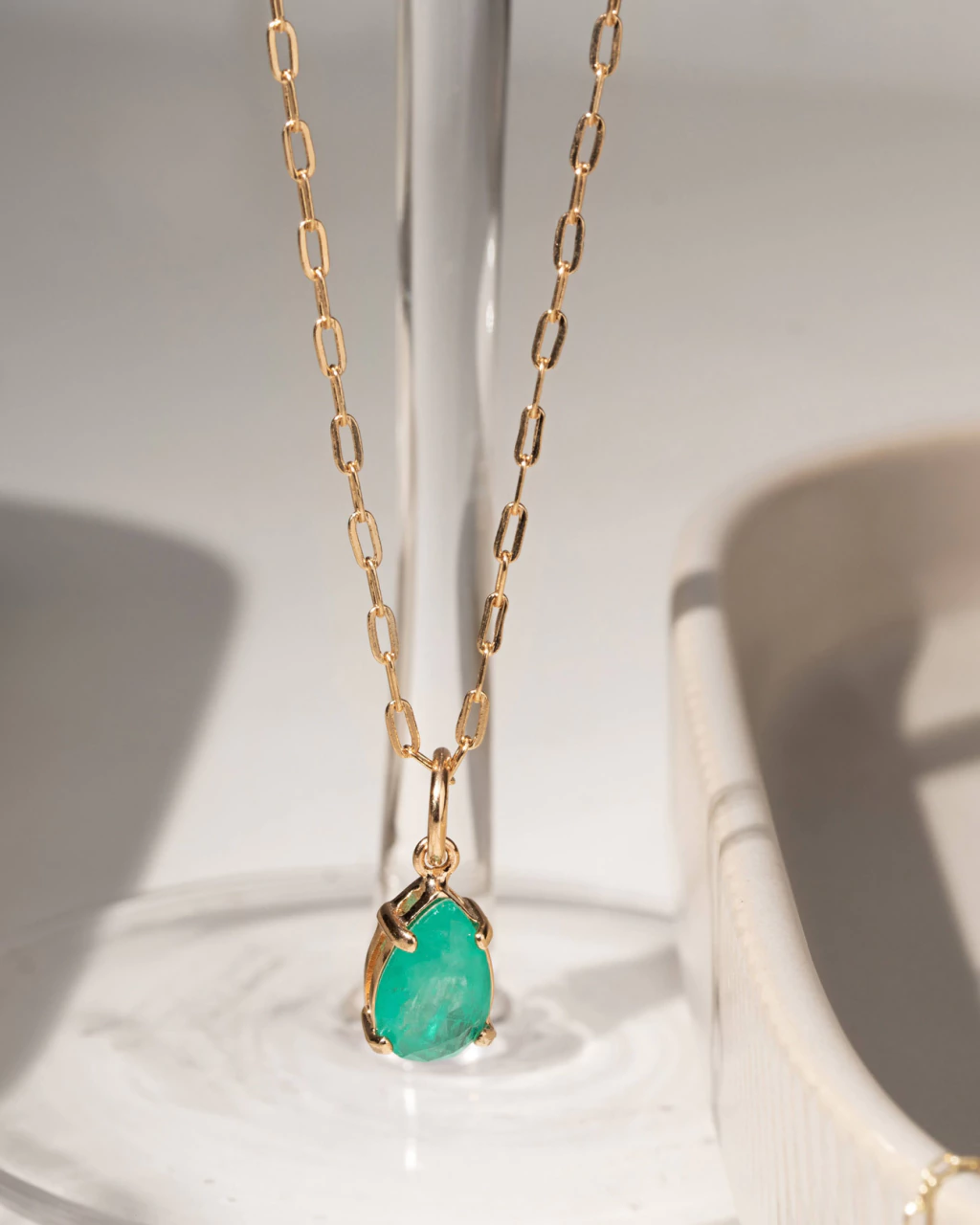 Corrente em delicados elos retangulares com pingente removível gota fusion turmalina.