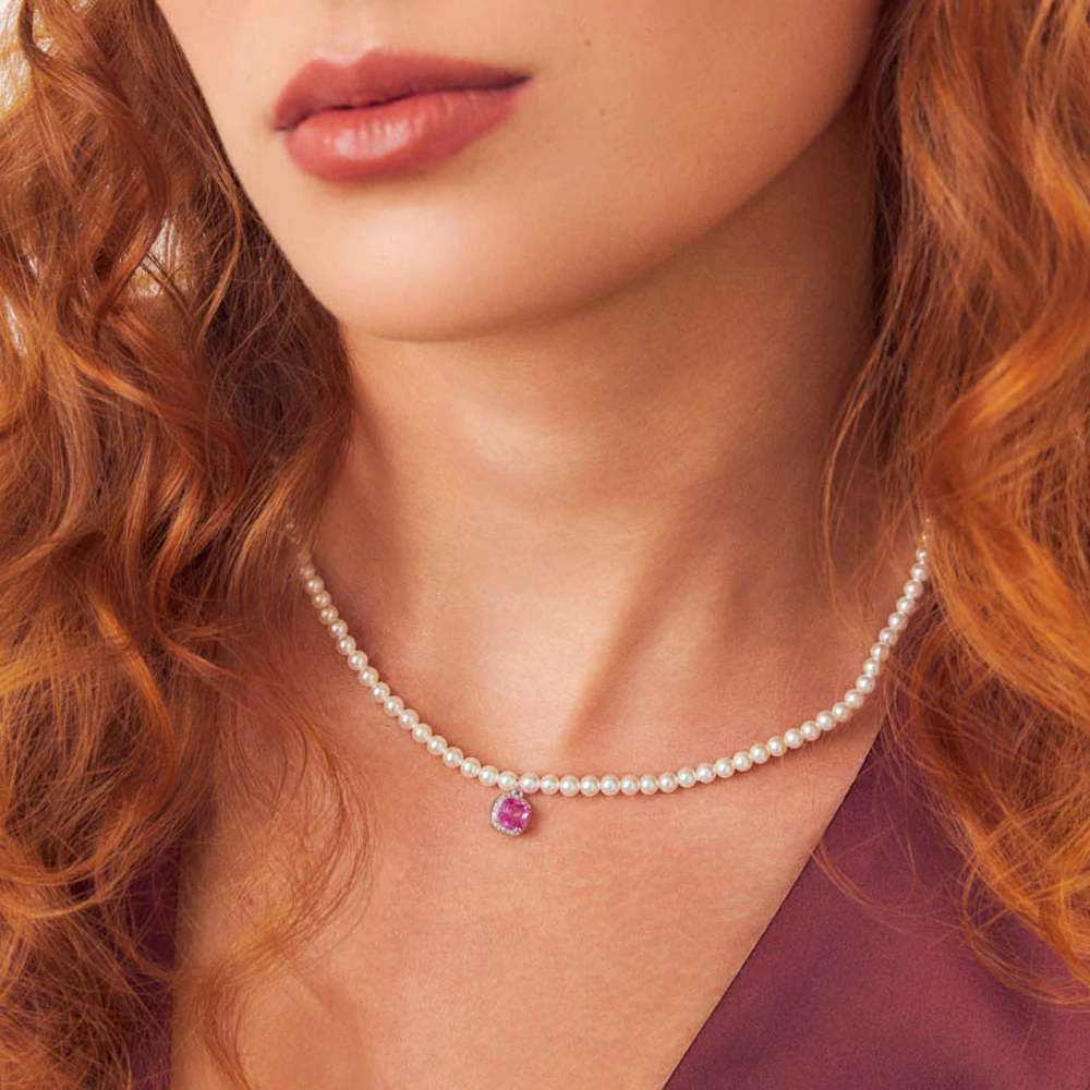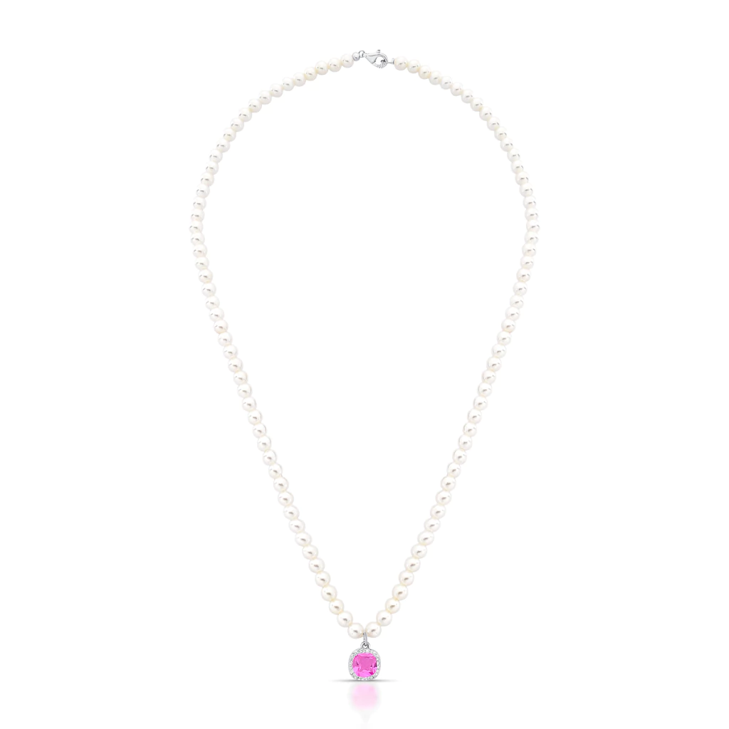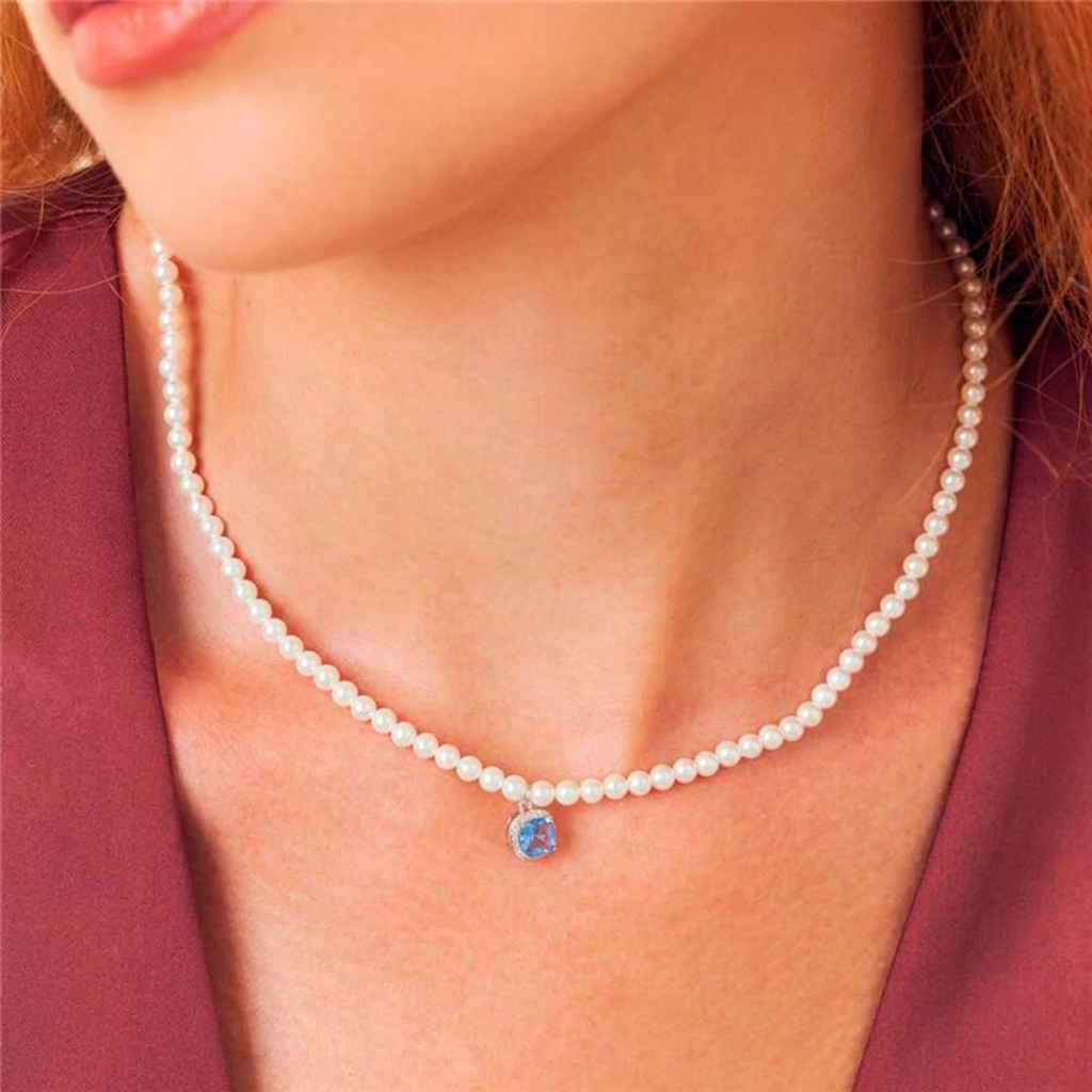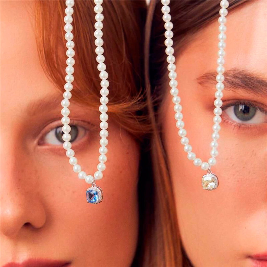 Colar em pérolas Shell com pinegnte quadrado cristal com zircônias.