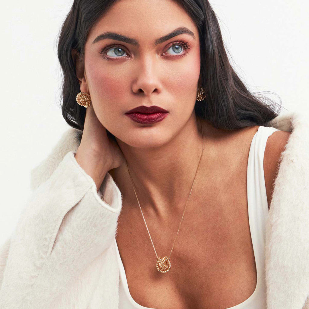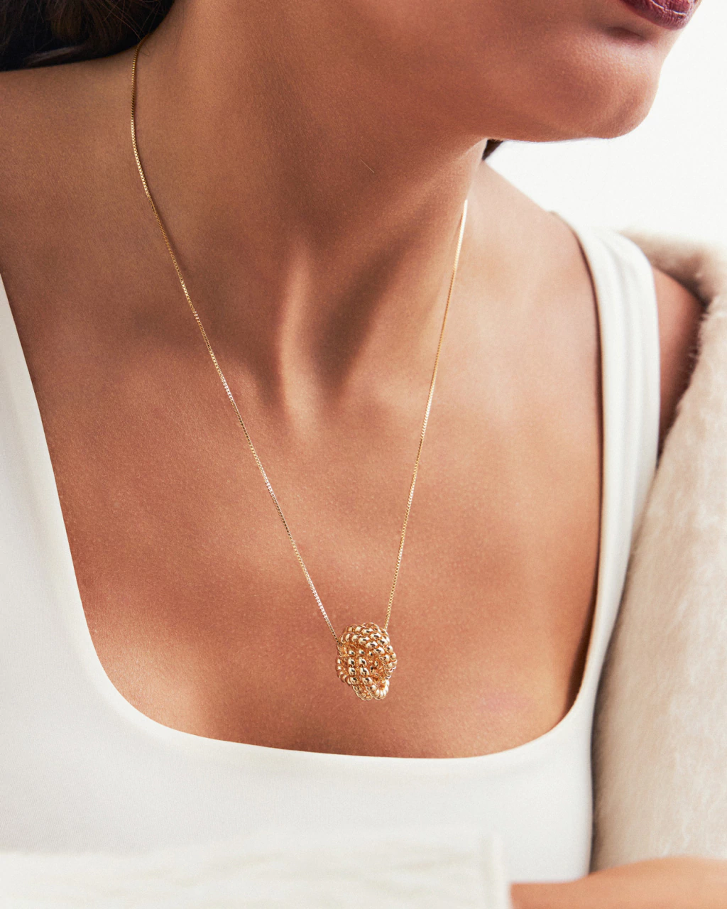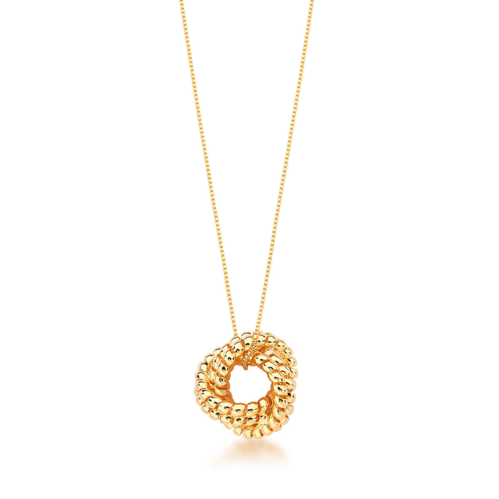 Pingente com 2 cm de diâmetro, entrelaçado com textura.