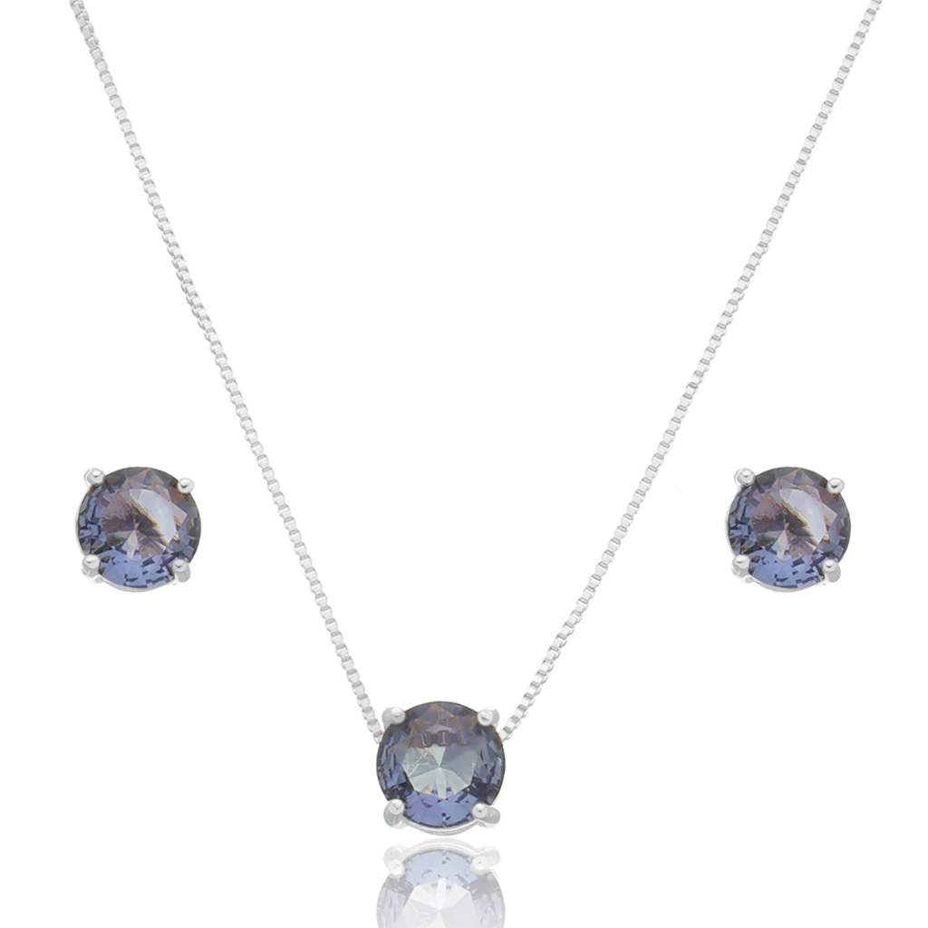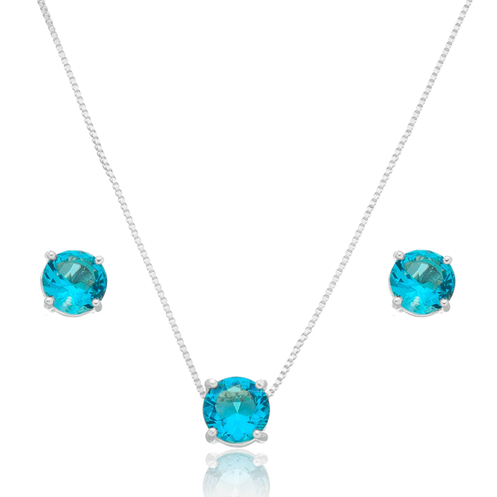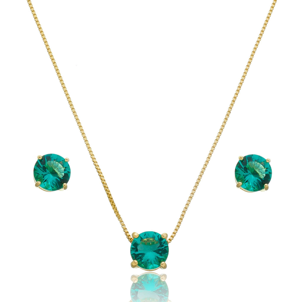 Colar e brinco com banho de alta qualidade e pedras zircônia de alto brilho.