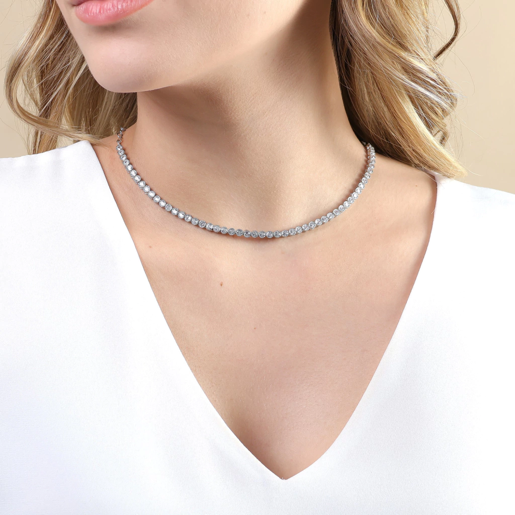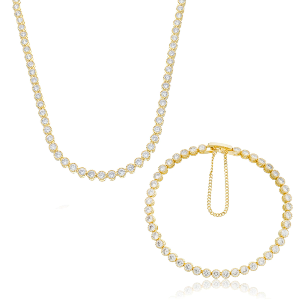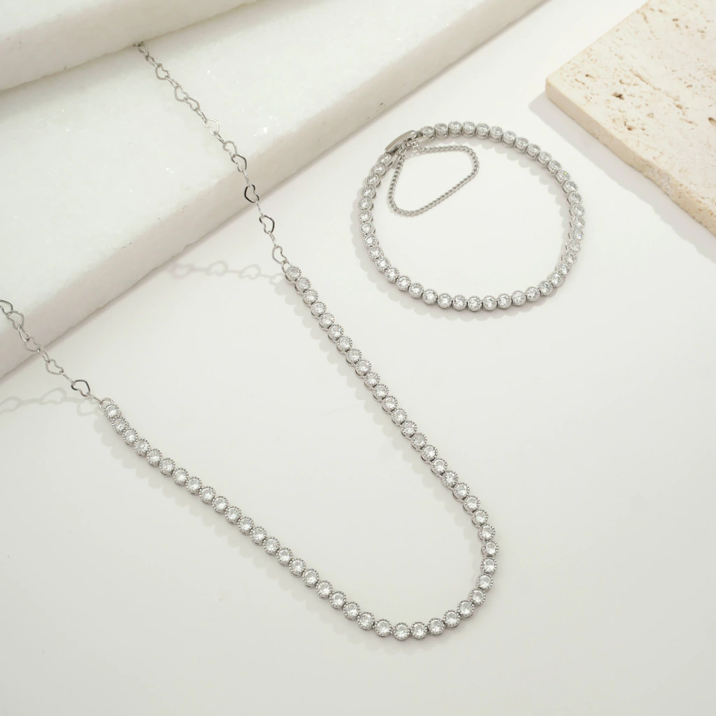 Colar e pulseira riviera delicadas e elegantes, com acabamento e brilho de joia.