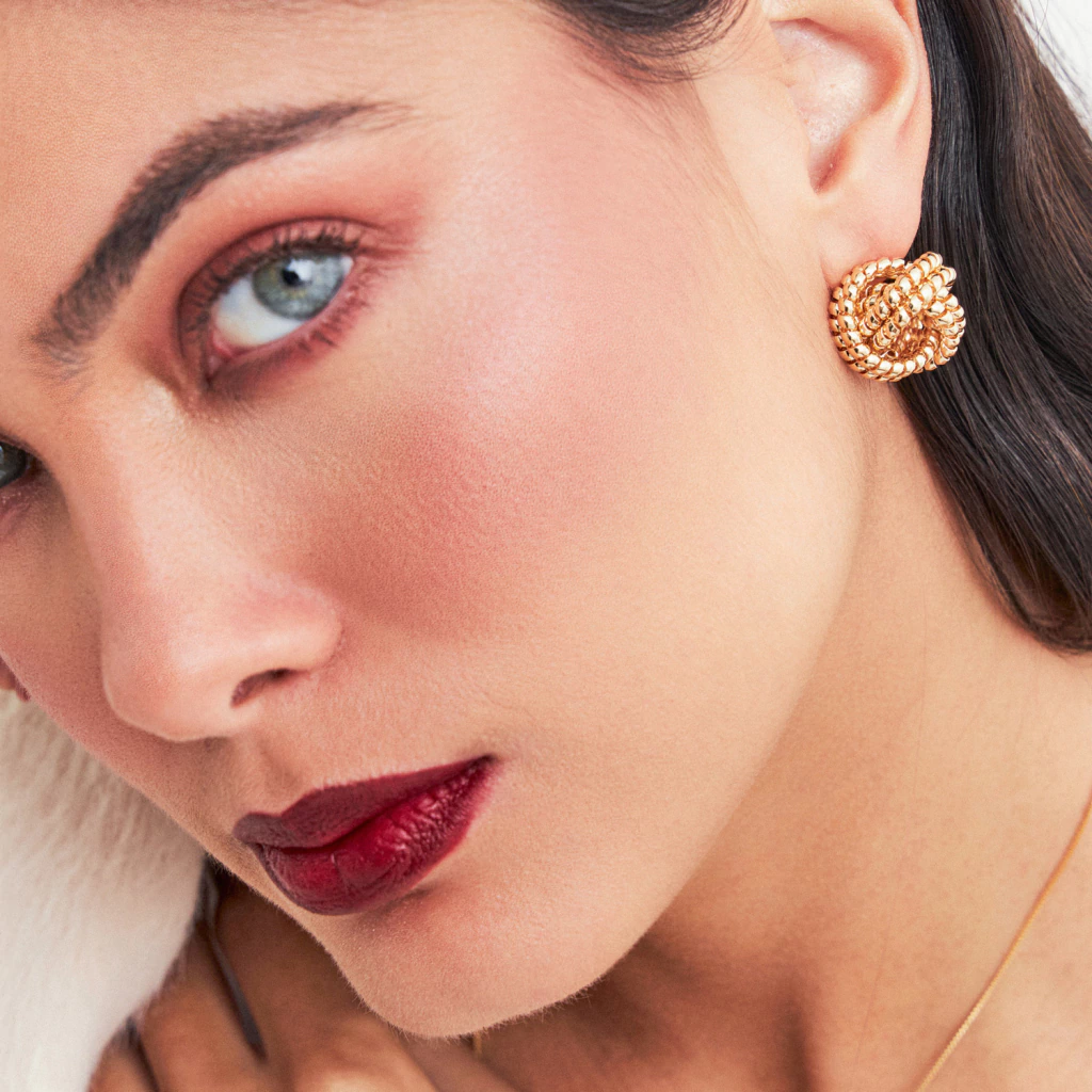 Brinco e pingente com 2 cm de diâmetro, entrelaçado com textura.