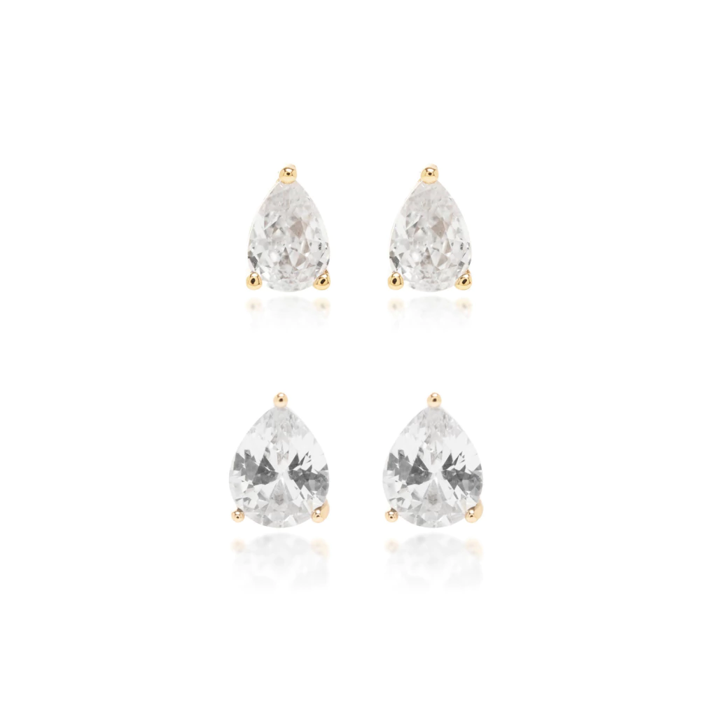 Duo de brincos ponto de luz pedra gota zircônia de alto brilho.