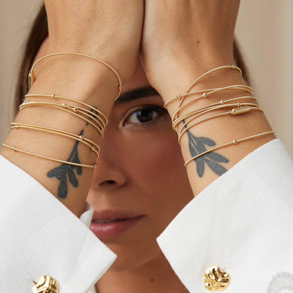 Versátil, pode ser usada como colar ou pulseira.